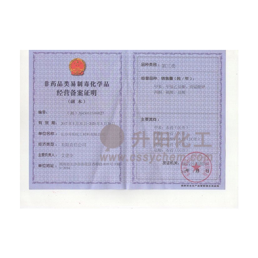 長(zhǎng)沙升陽(yáng)化工材料有限公司成立于2009年,是一家已經(jīng)擁有10年化工原料經(jīng)營(yíng)歷史的企業(yè)。我們本著“服務(wù)至上,以誠(chéng)為本”的原則,為廣大的新老客戶(hù)提供最優(yōu)質(zhì)的產(chǎn)品、最便捷的服務(wù)。歷經(jīng)10多年的積淀與發(fā)展,現(xiàn)已成長(zhǎng)為湖南省頗具規(guī)模的專(zhuān)業(yè)化學(xué)品服務(wù)供應(yīng)商之一。?公司集貿(mào)易,科研,倉(cāng)儲(chǔ),物流為