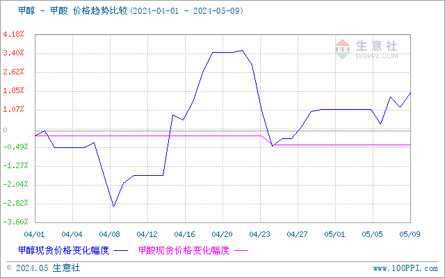 據生意社商品行情分析系統(tǒng),截止到5月9日國內工業(yè)級85%甲酸企業(yè)報價均價為3287.50元/噸,較周一價格相比,基本持平。